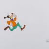 A production cel and background from the Walt Disney Studios animated series “Goof Troop” (1992). Featuring Goofy in the middle of a leaping sprint over mud, the production cel and background were created at the studio and used during the animation process. Each piece is an actual frame of animation that was photographed and appears in different episodes of the series. Measuring 10.75”x14.75” overall, with a 10.5”x12.5” cel layer, and a character image measuring 9.5”x12.5”, the setup is in very good condition with minor surface and edge wear from studio use and handling.